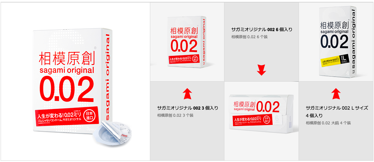 sagami original 0.02 (相模原創(chuàng)0.02系列), 是日本相模橡膠工業(yè)株式會(huì)社于1998年推出首次創(chuàng)新發(fā)明并向日本市場(chǎng)的一種以聚氨基甲酸酯 (高分子材料)為原料制成的非乳膠安全套, 厚度僅0.02mm, 是傳統(tǒng)的橡膠產(chǎn)品“厚度一半,強(qiáng)度三倍”, 并且擁有高導(dǎo)熱性能,讓產(chǎn)品使用體驗(yàn)更加美妙!